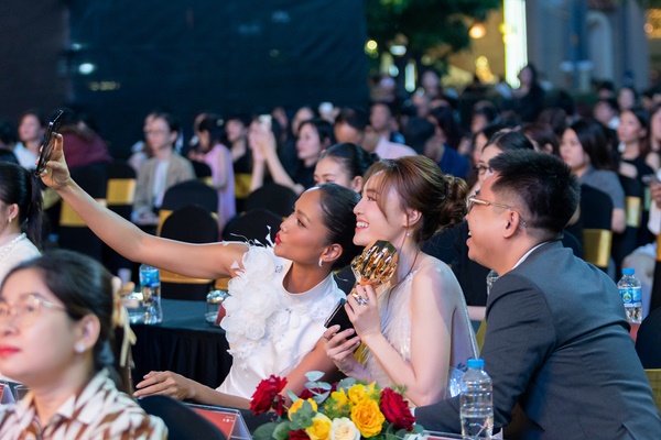 Ngay sau khi chào kết show diễn, H’Hen Niê vội thay đổi kiểu tóc và diện đầm trắng của NTK Linh San, tranh thủ cầm váy và “chạy marathon” để kịp giờ cho sự kiện ở cách đó 500m. H’Hen Niê nói vui chính kinh nghiệm chạy bộ và tập thể thao chăm chỉ rất có ích cho những lúc như thế này. H’Hen Niê cho biết mình đã xin phép ban tổ chức đến muộn, bởi cả hai sự kiện đều rất quan trọng với cô nên cô cố gắng sắp xếp tham gia cả hai sự kiện. Cô nhanh chóng vào vị trí khu vực ngồi cạnh diễn viên Ninh Dương Lan Ngọc và theo dõi, ủng hộ các tiết mục ca nhạc, các cá nhân, tập thể lên sân khấu nhận giải.