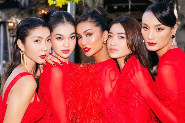 Khách mời tham dự buổi tiệc mặc trang phục màu trắng, đen chủ đạo. Trong khi đó, các người đẹp, người mẫu mặc trang phục màu đỏ, là những thiết kế mới nhất của NTK Đỗ Mạnh Cường.