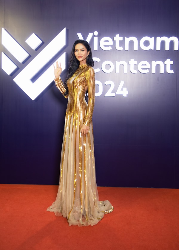 Diện trang phục vàng lấp lánh của NTK Lê Thanh Hoà, Hoa hậu H’Hen Niê nhanh chóng tạo sự thu hút với khán giả khi xuất hiện trên thảm đỏ Vietnam iContent Awards 2024. Trước đó, H’Hen Niê đảm nhận vai trò first face cho một show diễn thời trang rồi lập tức thay đồ, di chuyển đến địa điểm diễn ra chương trình. Tất bật với lịch trình công việc, H’Hen Niê cho biết mình yêu sự lao động và cảm thấy vui khi được làm việc, cống hiến cho xã hội.