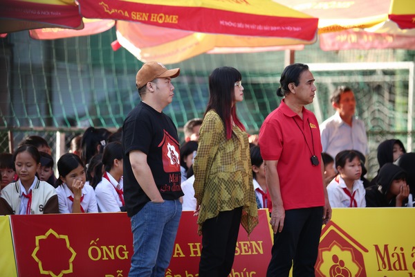 Diễn viên Hiền Mai và ca sĩ, nhạc sĩ Hamlet Trương xúc động khi chứng kiến hoàn cảnh khó khăn của các em nhỏ mồ côi tại Mái Ấm Gia Đình Việt.