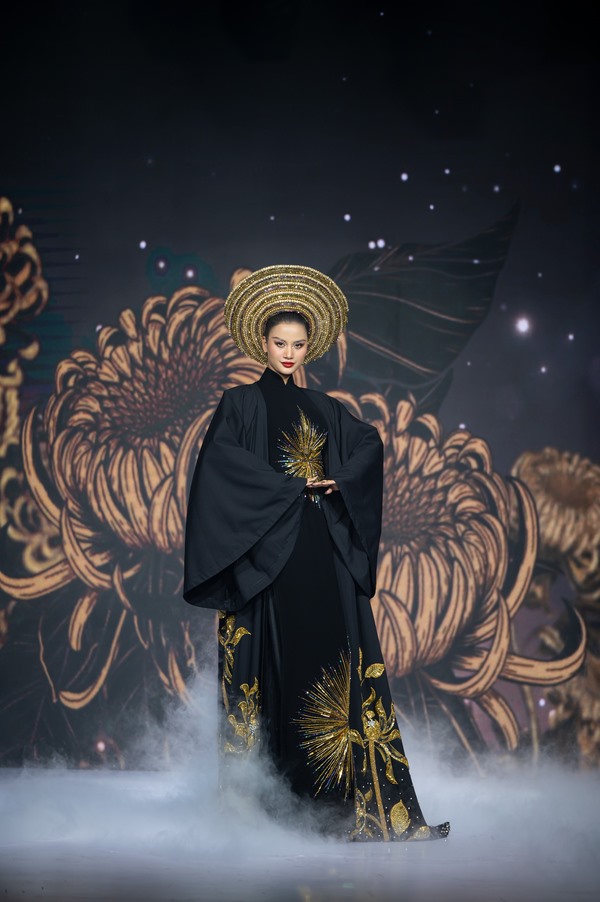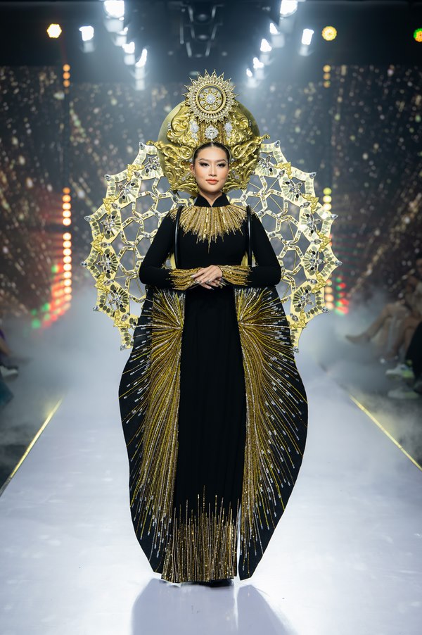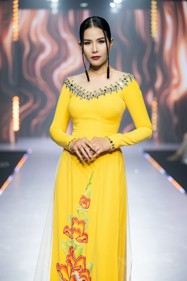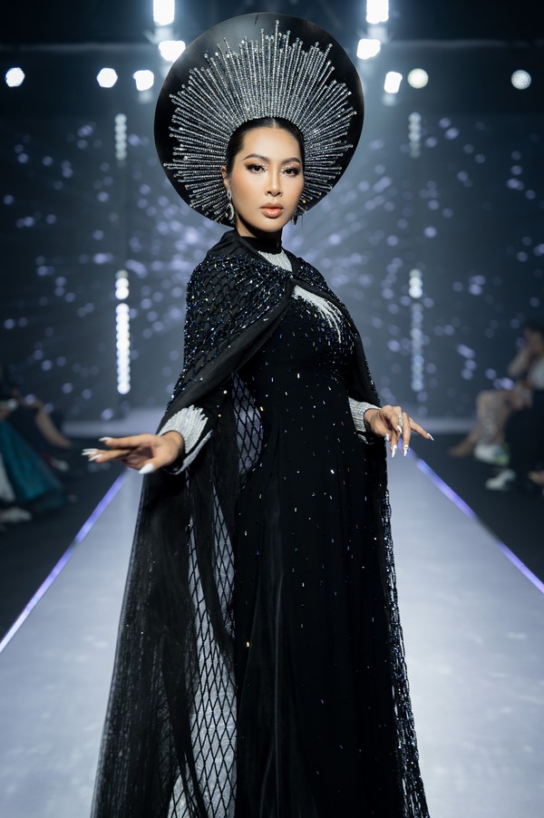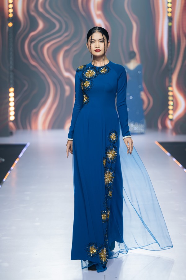Người đẹp Hương Ly – Top 5 Hoa hậu Hoàn vũ Việt Nam 2022 đảm nhận vai trò first face màn 01, Miss World Vietnam 2016 Diệu Ngọc đảm nhận vai trò first face màn 02 và đương kim Hoa hậu Hoà bình Việt Nam Đoàn Thiên Ân chính là vedette đặc biệt của NTK Minh Châu. Hoa hậu Đoàn Thiên Ân mang trang phục áo dài được thiết kế độc đáo, nặng gần 20kg lên sân khấu.