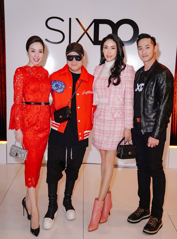 Em trai ca sĩ Ý Lan – anh Lê Xuân Việt hiện đang là bác sĩ, làm việc ở trung tâm California. Đồng hành với em trai ca sĩ Ý Lan để dự tiệc là bà xã của anh, diện áo vải tweed phối chân váy dập li của SIXDO. Chị ấn tượng với câu chuyện thành lập thương hiệu SIXDO, từ việc NTK Đỗ Mạnh Cường nhận nuôi 6 đứa trẻ.
