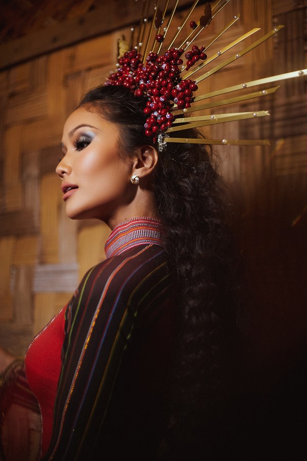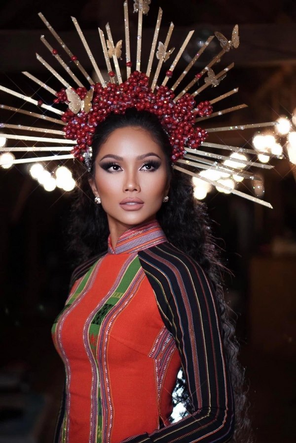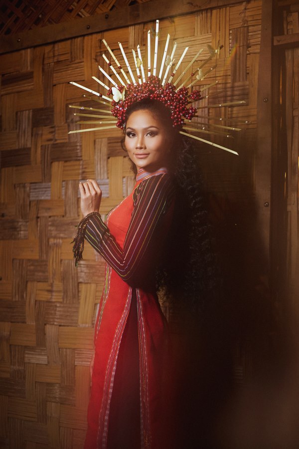 Sau loạt trang phục từ vải thổ cẩm và hình ảnh cây cà phê, Hoa hậu H’Hen Niê tiếp tục mang tinh hoa dân tộc đến với ngày bế mạc lễ hội cà phê Buôn Ma Thuột. Diện áo dài thổ cẩm, Hoa hậu H’Hen Niê nổi bật cùng nụ cười rạng rỡ và vương miện cà phê lộng lẫy.