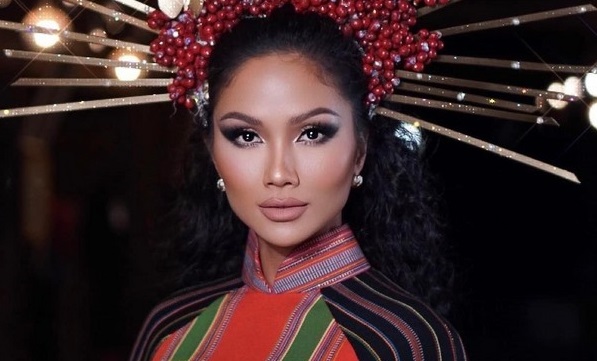 Khép lại lễ hội cà phê Buôn Ma Thuột lần thứ 08 năm 2023, Hoa hậu H’Hen Niê xuất hiện nổi bật với chiếc vương miện làm từ cà phê thật, cùng áo dài thổ cẩm.
