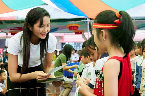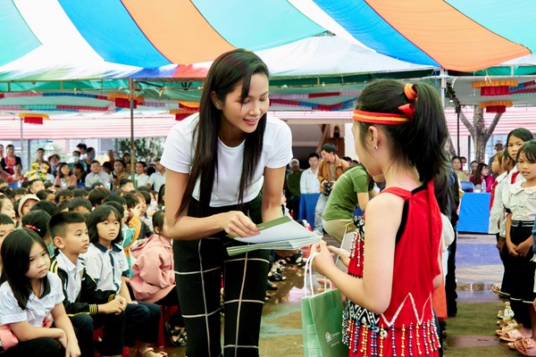 Hoa hậu H’Hen Niê có chuyến công tác tại huyện Đak Đoa, tỉnh Gia Lai, trao thư viện thân thiện Room To Read cho trường tiểu học Đak Krong. Đây là thư viện thứ 07 được H’Hen Niê đồng hành xây dựng trong hơn 05 năm qua.