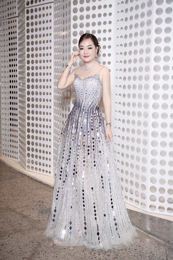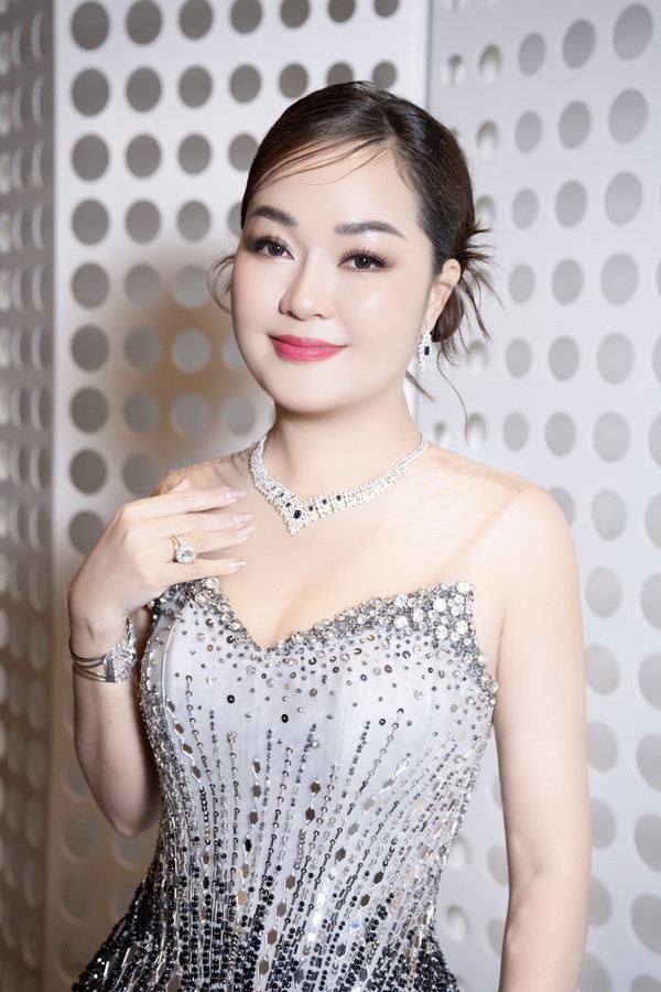 Nữ doanh nhân cũng chọn bộ trang sức sang trọng và đắt giá vô cùng phù hợp, góp phần tô điểm cho dáng vẻ yêu kiều của mình. Hoàng Thanh Nga luôn toả sáng tại các sự kiện quan trọng nhờ phong cách thời trang sang trọng và cuốn hút.