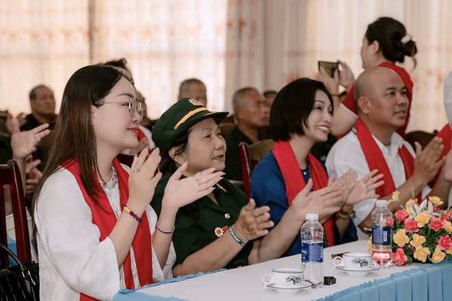 Tiếp đó, Hoa hậu Hoàng Thanh Nga tiếp tục trong hành trình cùng Mặt trận Tổ quốc Việt Nam phường Hòa Hưng đến thăm các bác cựu chiến binh tại Trung tâm điều dưỡng thương binh và người có công Long Đất. Cô chia sẻ: “Mình thật sự không kìm được cảm xúc. Ở đây là những con người đã đi qua chiến tranh bằng chính máu thịt của mình… để đổi lấy hòa bình cho chúng ta hôm nay. Chúng tôi đã có một buổi văn nghệ thật ấm áp và ý nghĩa. Cùng các bác hát lại những ca khúc về chiến dịch Hồ Chí Minh lịch sử, về người lính, về ngày đất nước được giải phóng… Những giai điệu hào hùng ấy vang lên, không chỉ là âm nhạc – mà còn là ký ức, là một thời tuổi trẻ oanh liệt của các bác.”