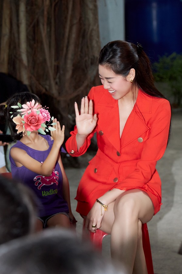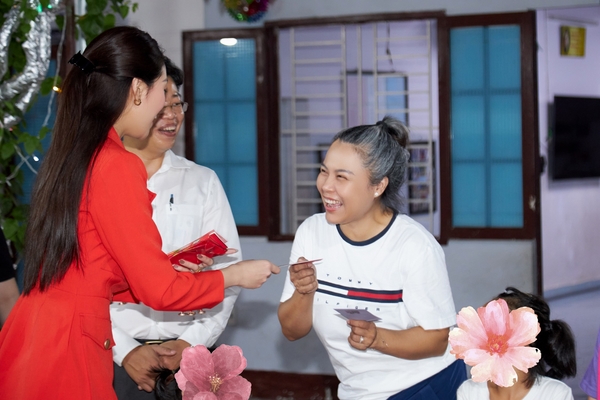 Cùng với những phong bao lì xì, Hoa hậu Khánh Vân không quên gửi lời chúc đến các cô, các em nhỏ tại OBV và lần lượt nghe từng em hứa năm nay sẽ đạt được thành tích gì làm quà tặng cho cô Khánh Vân.