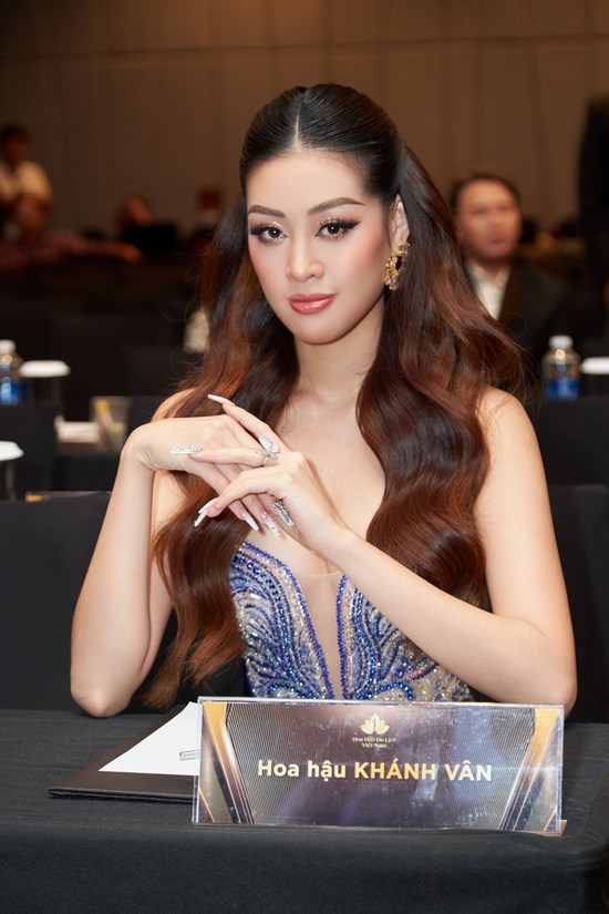 Xuất hiện trên thảm đỏ họp báo Hoa hậu Du lịch Việt Nam 2022, Hoa hậu Khánh Vân chọn bộ cánh màu xanh cúp ngực. Sau hai tháng kết thúc đương nhiệm Hoa hậu Hoàn vũ Việt Nam, Hoa hậu Khánh Vân ngày càng thăng hạng về nhan sắc và thần thái. Cô tự làm stylist cho chính mình, thỉnh thoảng kết hợp cùng các stylist khác trong các bộ ảnh để thay đổi phong cách.