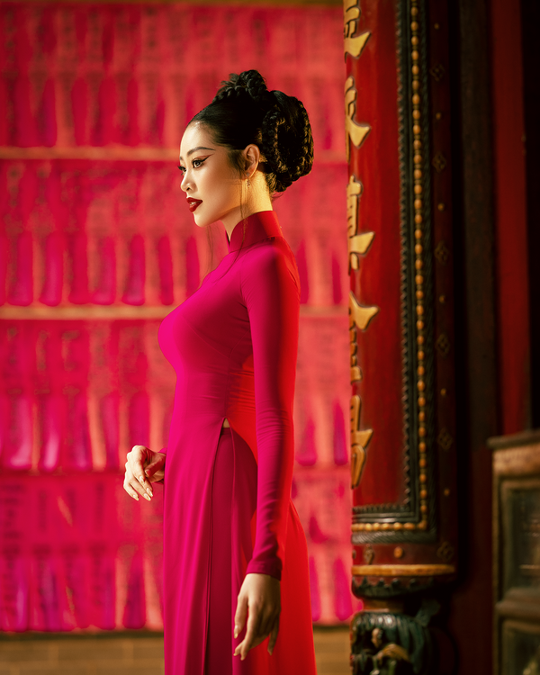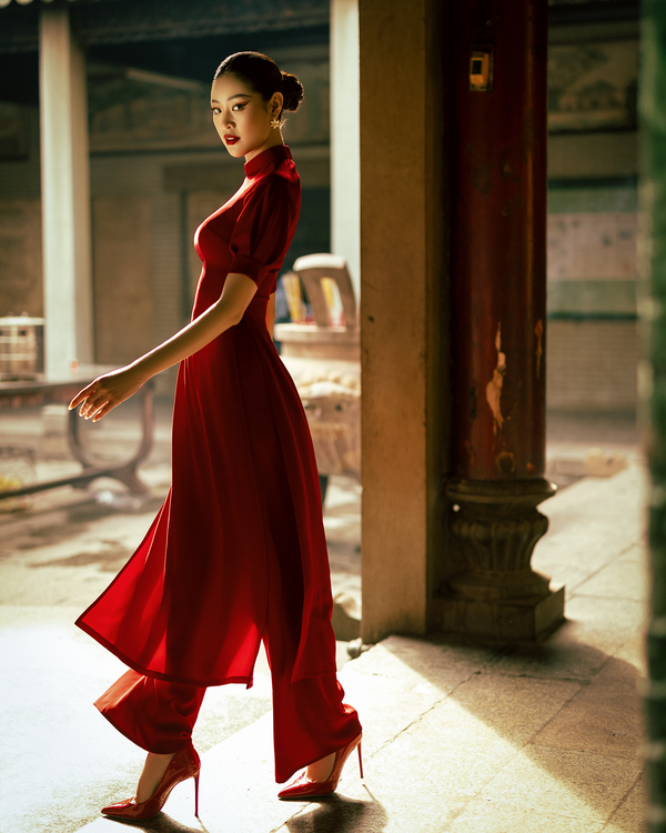 Nhân dịp này, Hoa hậu Khánh Vân thực hiện bộ ảnh Tết, gửi gắm những điều tốt đẹp và lời nguyện cầu dành cho xuân Quý Mão 2023. Diện trên người tà áo dài truyền thống, Hoa hậu Khánh Vân duyên dáng thướt tha kết hợp cùng kiểu tóc cách điệu lấy cảm hứng từ hình tượng rồng trong dân gian Việt Nam. Chọn áo dài màu đỏ và hồng – những sắc màu rực rỡ đại diện cho những lời chúc tốt ngày năm mới, Hoa hậu Khánh Vân muốn lưu giữ khoảnh khắc đặc biệt nhất của năm – những ngày cuối năm chuẩn bị đón giao thừa, lòng hân hoan mong ngóng nhưng cũng bồi hồi nhìn lại những chuyện trong một năm qua.