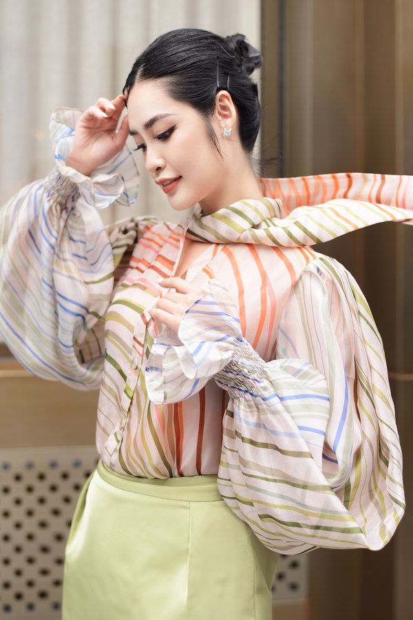Mỗi lần lên hình, Nông Thúy Hằng đều có sự biến hóa đa dạng về trang phục, trang điểm, cách làm tóc để không gây nhàm chán với khán giả theo dõi chương trình. Hoa hậu các dân tộc Việt Nam 2022 rất ưa chuộng những gam màu trung tính, đặc biệt là màu be thanh lịch, duyên dáng.
