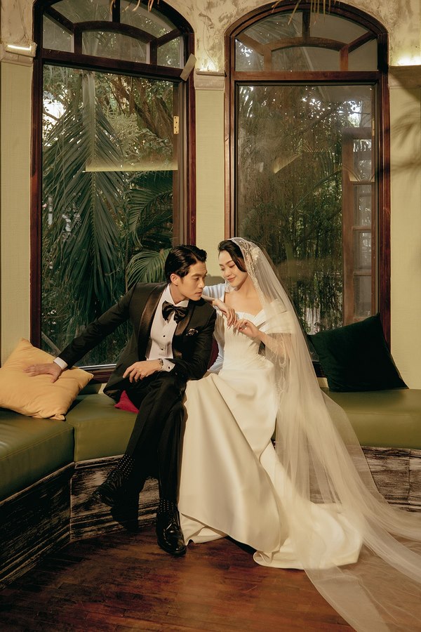 Người đẹp sinh năm 1999 chọn lối trang điểm nhẹ nhàng cùng tóc búi cao đơn giản. Nhan sắc tuổi 24 của nàng hậu Việt càng ngày càng trở nên mặn mà sau hơn 1 năm đăng quang. Trong ảnh, Nông Thúy Hằng và chú rể liên tục trao nhau ánh mắt trìu mến cùng những tương tác ngọt ngào. Khán giả không ngừng đồn đoán người đẹp dân tộc Tày chuẩn bị lên xe hoa.