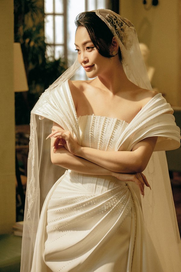 Mới đây, hình ảnh Hoa hậu các dân tộc Việt Nam 2022 Nông Thúy Hằng diện váy cưới nhận được sự quan tâm của đông đảo khán giả. Theo đó, nàng hậu diện 2 thiết kế váy cưới khác nhau. Nếu như trong thiết kế đầu tiên, các chi tiết gấp nếp 3D tạo phom váy sắc nét, hiện đại thì chiếc váy cưới thứ 2 lại là sự kết hợp của phom áo dài với áo yếm mang đậm hơi thở truyền thống.