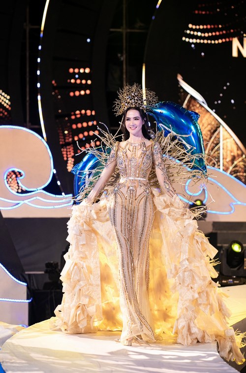 Nói về sự kiện đình đám tại Nha Trang, nhà thiết kế Nam Phong đã “đo ni đóng giày” trang phục như nữ thần biển màu ngà cho Phan Thị Mơ. Anh cho biết thiết kế được đính nhiều đá phát sáng, kết cườm thủ công rất tỉ mỉ, tốn khá nhiều công sức và chi phí. Phần đuôi váy được tạo độ phồng, bồng bềnh với những nếp gấp tinh tế mô phỏng những con sóng vĩ đại của đại dương phối với vương miện lấy cảm hứng từ san hô càng khiến tổng thể hình ảnh của người đẹp trở nên uy nghi, rực rỡ nhất có thể.