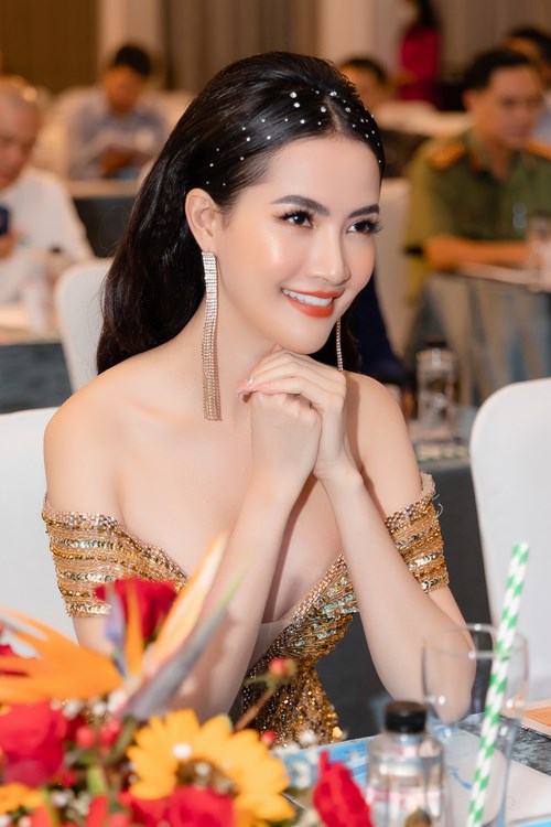 Trên đường đi đến sự kiện, Hoa hậu Đại sứ Du lịch Thế giới hào hứng chụp lại hình ảnh banner, Poster cô làm đại diện quảng bá cho Hoa hậu Du lịch Biển Việt Nam 2022 được treo trang trọng ở nhiều vị trí quảng trường, giao lộ địa phương nơi diễn ra cuộc thi. Cô rủ rê bạn bè, người hâm mộ: “Ra đây thấy hình bé treo đầy đường nè…”. Người đẹp gốc Tiền Giang cũng rất thân thiện chào hỏi, giao lưu khi du khách hoặc người dân địa phương nhận ra mình, xin chụp ảnh lưu niệm.