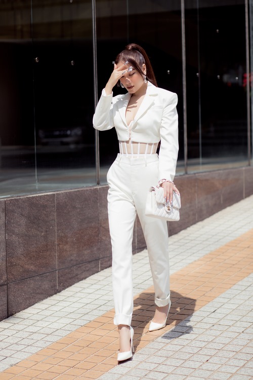 Đặc biệt, Tuyết Nga cho thấy phong cách thời trang hiện đại và tinh tế. Cô nổi bật với những kiểu trang phục như váy quý phái hay toát lên vẻ trẻ trung năng động qua bộ blazer hồng sáng. Đến bộ cánh hai mảnh tông đen ma mị, vẻ đẹp cùng khí chất sexy của Tuyết Nga bùng nổ hơn. Riêng vòng eo con kiến của nữ nghệ sĩ được tôn lên tối đa. Ngoài ra, cô còn gây ấn tượng với gương mặt đẹp không góc chết.