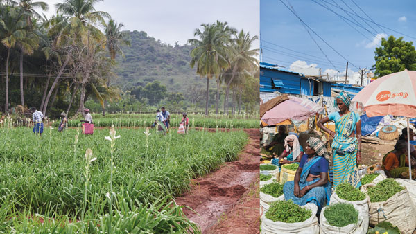 Di chuyển đến khu chợ Mattuthavani, khung cảnh náo nhiệt và màu sắc hiện diện khắp nơi: những đóa cúc vạn thọ màu cam rực rỡ, hoa cúc vàng, hoa hồng đỏ sậm, những bao tải đầy hoa huệ màu kem và hoa nhài trắng. Hàng đống nụ hoa được trải lên sàn gạch. Những người đàn ông thét lớn trong khi các nụ hoa được gom lại và cho vào túi, cân trên những chiếc cân sắt, họ thương lượng và ngã giá.