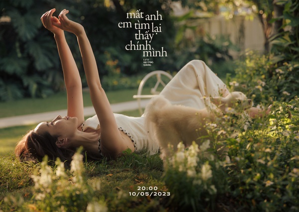 Cảm giác thoải mái, dễ chịu là thứ có thể nhận thấy đầu tiên qua tấm poster này. Hình ảnh Lưu Hương Giang nằm thảnh thơi dưới bãi cỏ xanh mượt. Cùng với đó, dòng chữ “Mất Anh Em Tìm Lại Thấy Chính Mình” chính là tên bài hát của lần trở lại này.