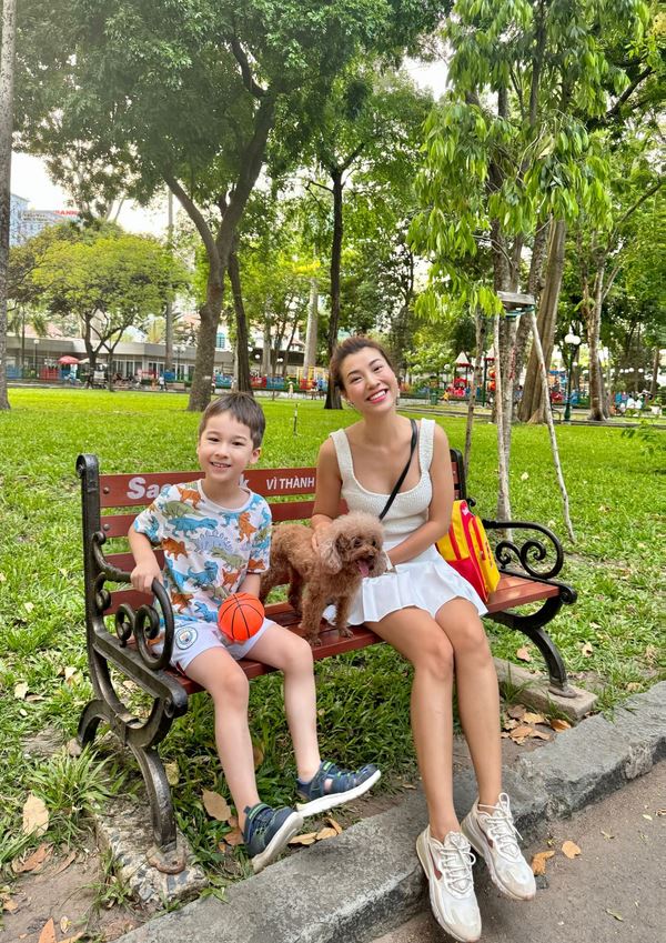 Hoàng Oanh cho biết con trai có tính cách năng động và nhiều lần làm cô hoảng sợ vì quá thân thiện với người lạ.