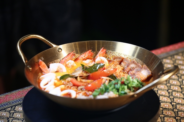 Đặc biệt, món “Sườn cay Thái Aroy” với khoảng 6kg sườn được xếp thành hình một ngọn núi nhỏ cùng nước sốt cay the lên vô cùng hấp dẫn. Hương vị thịt sườn mềm, ngọt từ bên trong cùng với nước sốt cay the khiến món ăn trở nên hòa quyện hơn. Hoàng Rapper đã vô cùng thích thú khi thưởng thức cả một “ngọn núi” sườn cay đậm chất Thái. Cả Tuấn Kiệt ít ăn cay vẫn không cưỡng lại vị ngon hấp dẫn của món ăn này. Về phần Chen Ru Lu, cô nàng tiết lộ khi dùng món sườn cay và cảm nhận như bản thân đang ở Thái Lan thật sự vậy.