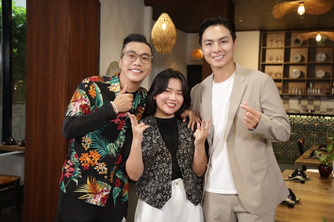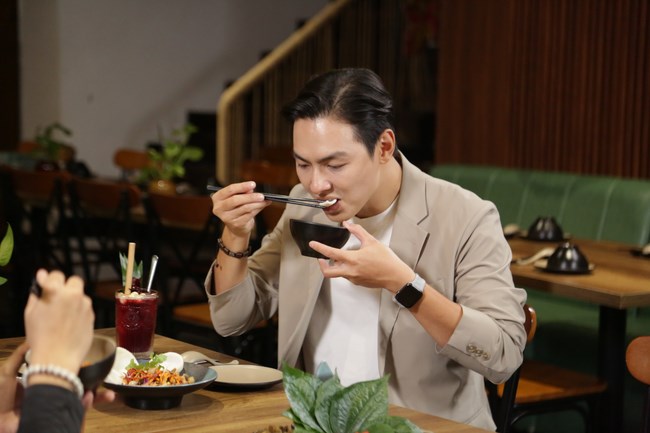 Diễn viên Jay Quân thích thú khi được MC Hoàng Rapper và Chen Ru Lu mời thưởng thức bữa đại tiệc của Quán ăn hạnh phúc.