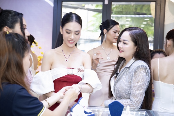Tại đây, Hoa hậu Hoàng Thanh Nga đã trực tiếp tư vấn, lựa chọn trang sức cho các thí sinh khi kết hợp cùng các kiểu dáng trang phục khác nhau. Các thí sinh vô cùng hào hứng và thích thú trước vẻ đẹp hào nhoáng và lấp lánh của những thiết kế trang sức đắt giá.