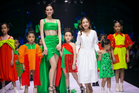 Với bộ sưu tập “Infinite” của nhà thiết kế Trinh Châu, diễn viên Khánh My thả dáng quyến rũ bên các mẫu nhí. Nhà thiết kế gởi gắm thông điệp “Trẻ em cần được sự yêu thương, bảo vệ và học tập một cách tốt nhất để tạo nền tảng phát triển và bứt phá. Ươm mầm những nhân tài tương lai của đất nước.