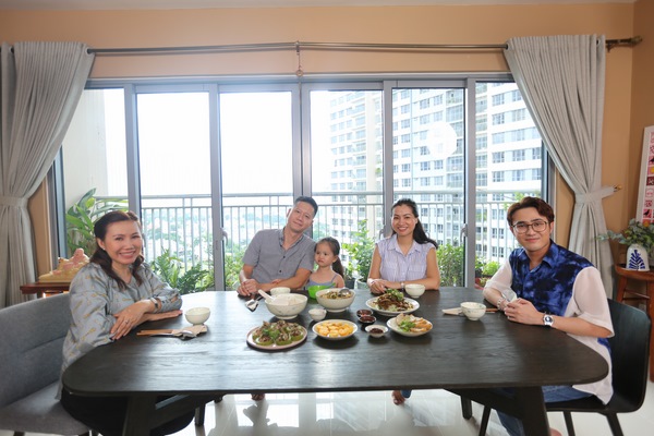 Hoàn thành 4 món ăn vô cùng cầu kỳ và hoành tráng, chị Giang cùng anh Dũng – chồng chị chiêu đãi MC Huỳnh Lập, đầu bếp Hiền Minh một bữa cơm nhà vô cùng đậm đà hương vị Bắc. Thưởng thức món Gỏi lươn hoa chuối, mọi người có cơ hội chia sẻ về sự giao thoa văn hóa của ẩm thực 3 miền Bắc – Trung – Nam.