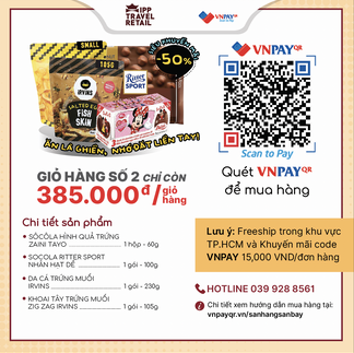 Theo đó, mỗi sản phẩm của IPP Travel như combo đặc sản, bánh kẹo, café hay sản phẩm độc quyền nổi tiếng Snack Irvins – da trứng cá muối Singapore… sẽ được tích hợp mã QR. Khách hàng chỉ cần sử dụng ứng dụng ngân hàng, quét mã VNPAY-QR trên combo sản phẩm, nhập địa chỉ nhận hàng, xác thực thông tin là hoàn tất giao dịch.