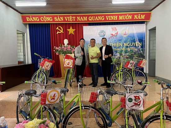 Tại đây, đoàn đã tặng 100 xe đạp cùng 100 phần quà Trung thu (trị giá 2.750.000 đồng/phần) cho 100 em học sinh có hoàn cảnh khó khăn vươn lên trong học tập. Đồng thời các tình nguyện viên của đoàn đã tổ chức cắt tóc miễn phí cho các em thiếu nhi và người dân địa phương.