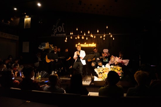 Hồ Tuấn Phúc hạnh phúc nhận hoa từ người hâm mộ