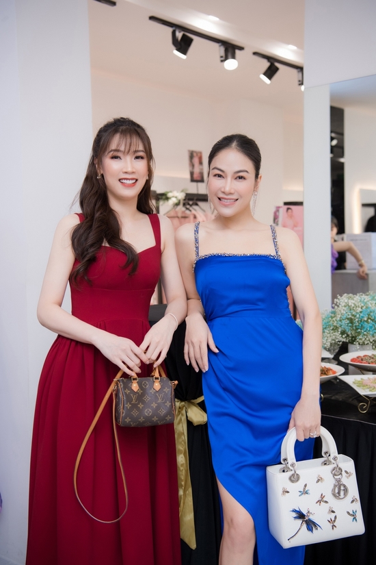 Không hề kém cạnh, Hoa hậu Áo dài 2019 Tuyết Nga tham dự sự kiện khai trương một cửa hàng thời trang tại Hà Nội. Người đẹp nổi bật với chiếc váy màu xanh coban gợi cảm, tông xuyệt tông cùng túi xách Dior. Người đẹp mê mẫn trước tông màu tím của Neva khi chọn thử một chiếc kế bay bổng, sang trọng.