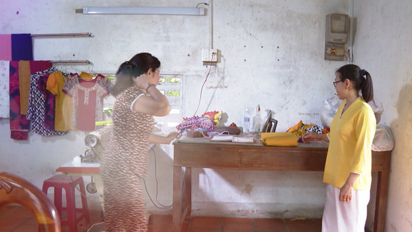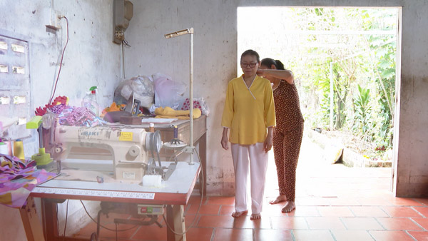 Thương con ngày một hiểu chuyện, người làm cha làm mẹ như anh chị lại quên đi những cơn đau nhức mà ra sức làm việc không ngơi nghỉ. Ngoài nhận may theo yêu cầu, chị Lành nhận thêm sửa chữa quần áo. Anh Sơn cũng phụ giúp vợ tháo chỉ, đơm nút, tất bật đi mua phụ liệu, giao nhận hàng để chị Lành yên tâm may vá.