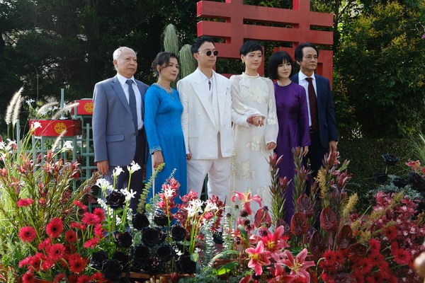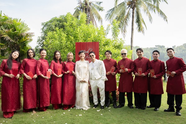 Lễ ăn hỏi của cặp đôi quy tụ dàn bê tráp là những gương mặt KOL/ influencer được yêu thích trên MXH như Dino Vũ, Kendall Nguyễn, Naomi, Phạm Diệu Linh,… Những người bạn này đồng loạt diện trang phục ton sur ton là những chiếc áo dài cách tân với màu sắc tươi sáng, tạo nên không khí hạnh phúc, trẻ trung cho sự kiện.