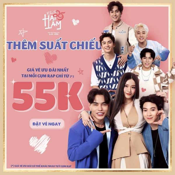 Sau 3 tuần ra rạp, Khi La Hai Lăm đã nhận được nhiều tình cảm của khán giả. Để tri ân người xem, từ hôm nay, khán giả có thể thưởng thức Khi Ta Hai Lăm tại các rạp trên toàn quốc với giá vé chỉ từ 55 nghìn đồng* (Giá vé ưu đãi có thể khác nhau tùy theo cụm rạp.)