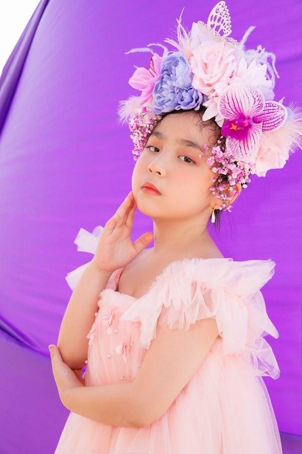 Mẫu nhí sinh năm 2016 là con lai thừa hưởng nét đẹp từ hai dòng máu Việt – Hàn, sở hữu ngoại hình sáng sân khấu và đặc biệt thu hút với đôi mắt to tròn đáng yêu.