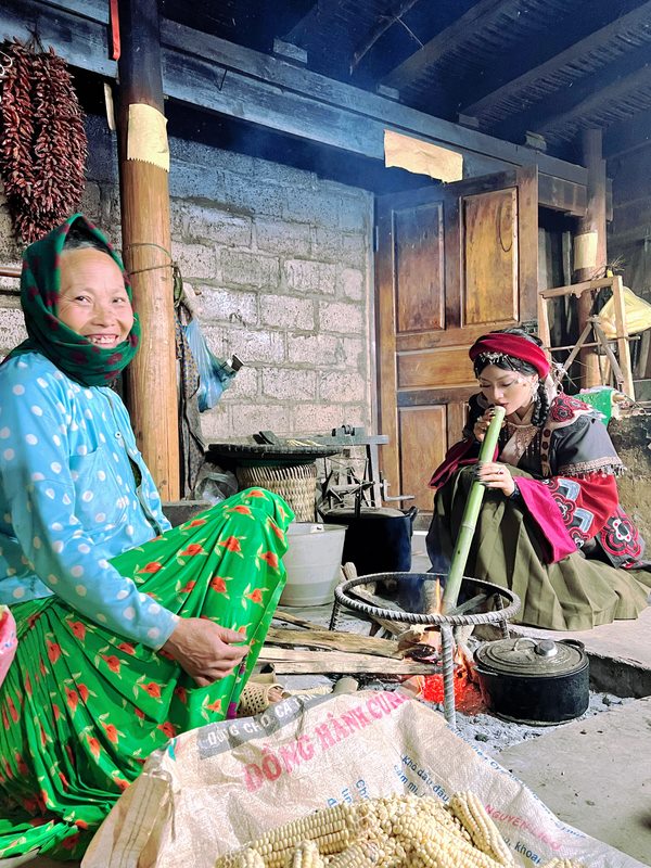 “Ngoài 9 tiếng ngồi xe ô tô đi vòng vèo qua các đèo núi mờ sương, thì để lên làng Sảo Há để quay còn là mấy km đường cheo leo, quanh co với chiều rộng đường có khoảng hơn 1m. Tôi ngồi trên xe máy một anh H’mong, một bên là vực đá, một bên là núi, xe thì phóng nhanh như bay để có lực leo núi. Tôi tái mét, vừa cố không nhìn xuống vực vừa tự cười trấn an mình, thầm mong không có ai ngã xuống. Dễ sợ hơn là khi đi vào buổi đêm, chẳng có tí đèn nào, mây mù phủ kín, đi con đường đó chỉ biết đặt niềm tin vào người cầm lái thôi. À còn lúc xe gần hết xăng nữa, đường thì toàn đá cuội to nhỏ, gập gềnh xe giật giật mà tôi muốn văng ra khỏi xe mấy lần. Xong đành bảo thôi để em đi bộ nốt đoạn đường cuối”, cô nhớ lại.