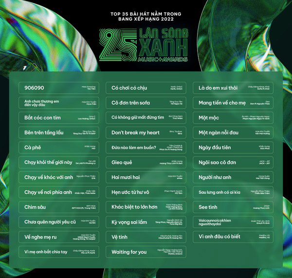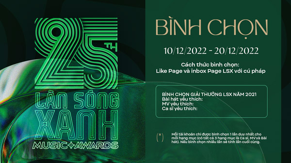 Làn Sóng Xanh (LSX) – giải thưởng âm nhạc lâu đời và uy tín nhất do Đài Tiếng nói nhân dân Tp.HCM (VOH) tổ chức – đang bước vào giai đoạn tổng kết và vừa chính thức phát động đợt bình chọn lần thứ 25 năm 2022.