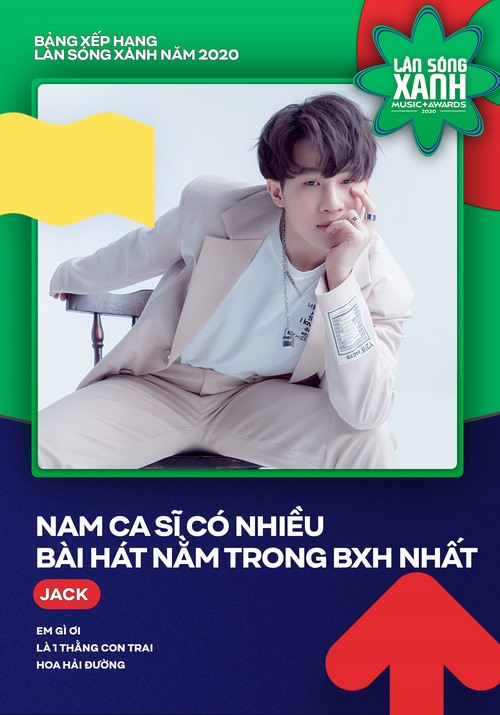Trong khoảng hơn 60 nghệ sĩ có bài hát lọt top, có 2 gương mặt đạt thành tích “có nhiều bài hát nằm trong bảng xếp hạng Làn Sóng Xanh nhất” là Jack và Bích Phương. Jack chiếm bảng xếp hạng với 3 ca khúc (Em gì ơi, Là 1 thằng con trai, Hoa hải đường). Trong khi đó Bích Phương cũng có 3 sản phẩm và đáng chú ý là cả 3 bài đều thuộc về E.P “Tâm trạng tan hơi chậm một chút”.