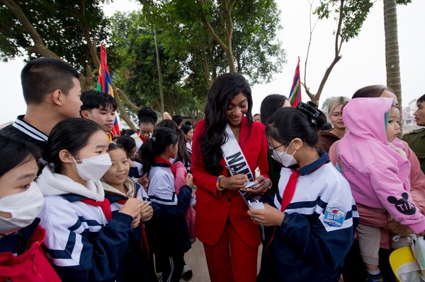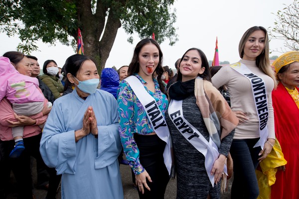 Bà Trần Thị Nhâm (93 tuổi), cho biết từ nhỏ đến hiện tại đây là lần đầu tiên được nhìn thấy các người đẹp quốc tế đến thăm làng. Bà đến đền từ sáng sớm để dự các lễ, đón các người đẹp. Bà nói các cô gái rất dễ thương, gần gũi và lễ phép.