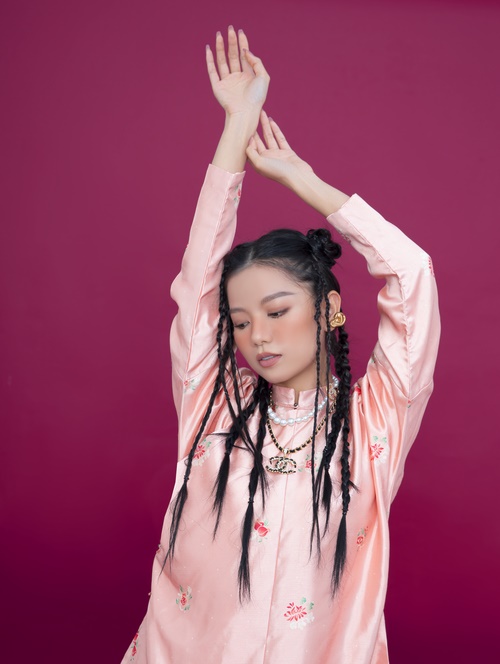 Lê Hạ Anh một lần nữa lột xác mạnh mẽ với trang phục áo ngũ thân mang đậm phong thái cổ xưa của Việt Nam được may chuẩn với form dáng triều Nguyễn. Chưa dừng lại ở đó, ngọc nữ của làng phim Việt còn tự tin phối hợp với nhiều phụ kiện hiện đại như blazer hay áo khoác da, cho thấy sự giao thoa mạnh mẽ nhưng cố kết giữa tinh hoa văn hóa dân tộc xưa và tinh thần hiện đại, trẻ trung của kỷ nguyên mới.