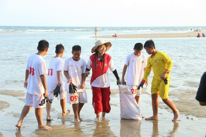 Không chỉ hướng đến kỹ năng và thể lực, Cầu thủ nhí 2025 còn chú trọng giáo dục tinh thần trách nhiệm xã hội. Trong chuyến nghỉ dưỡng, Top 10 cùng bảo mẫu Lê Bống đã tham gia hoạt động nhặt rác ven biển, thể hiện thông điệp tích cực và có ý nghĩa của các cầu thủ nhí năm nay.