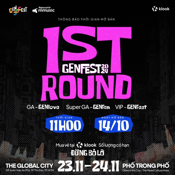 Ngày 15/10, toàn bộ line-up của GENfest 2024 sẽ lộ diện cùng lịch trình diễn chi tiết trong 2 ngày 23 và 24/11. Hiện tại, GENfest đang là sự kiện giải trí hàng đầu tại TP.HCM được giới trẻ quan tâm, mong đợi từng thông tin mới và đợt mở bán vé chính thức. Nếu năm 2023, GENfest đã thành công đưa “Nữ hoàng Kpop” – Lee Hyori đến Việt Nam lần đầu tiên, cùng “Nữ hoàng gợi cảm” – HyunA và “Quái vật nhạc số” – Zico và Zion.T, thì GENfest 2024 cũng úp mở về dàn nghệ sĩ quốc tế đình đám không kém.