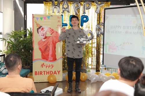 Bên cạnh hoa và bánh, nam diễn viên còn được mọi người hát mừng trong ngày đặc biệt. “Dù không phải lần đầu đón nhận những điều bất ngờ thế này nhưng thực sự cảm xúc trong tôi lại dâng trào. Tôi cảm ơn tất cả vì cho tôi một kỷ niệm không bao giờ quên được”, anh chia sẻ.