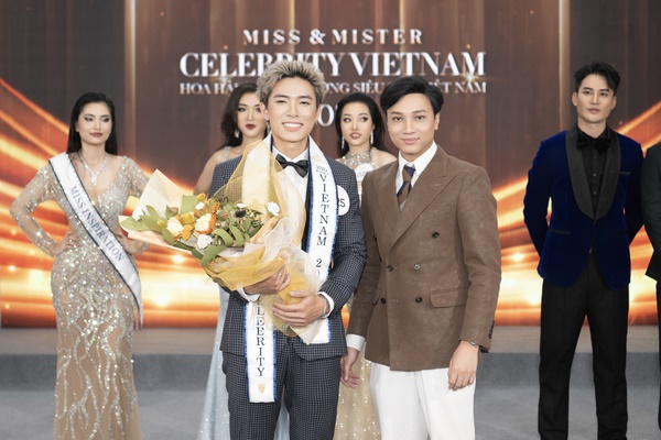 Không chỉ thế, ở bảng nam, 2 thí sinh là Bùi Quang Tuấn (bìa trái) và Đỗ Đức Duy (bìa phải) cũng được trao tặng trao tặng cúp, sash với danh hiệu 1st runner-up và 2nd runner-up Mister Celebrity Vietnam 2024.
