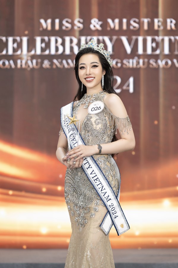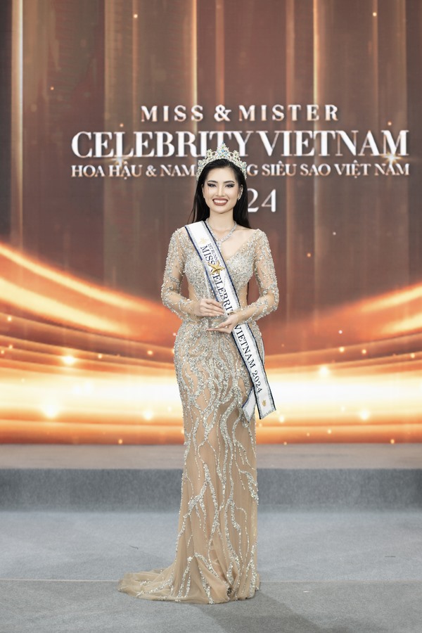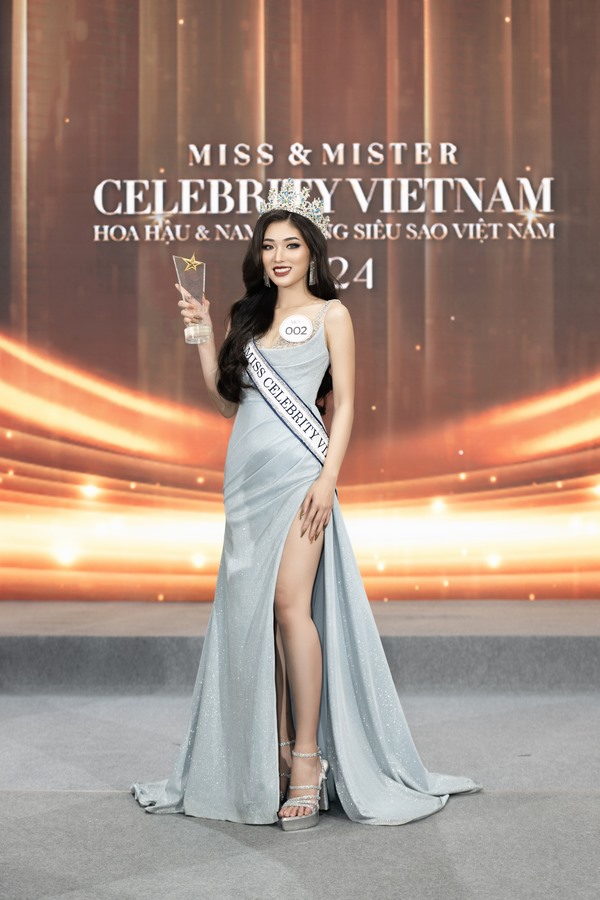 Bên cạnh đó, 2 thí sinh nữ có điểm số cao thứ nhì và ba tại chương trình lần lượt được trao tặng cúp, vương miện, sash với danh hiệu 1st runner-up và 2nd runner-up Miss Celebrity Vietnam 2024 cho Nguyễn Mỹ Tiên (bìa trái) và Bùi Mỹ Duyên (bìa phải).