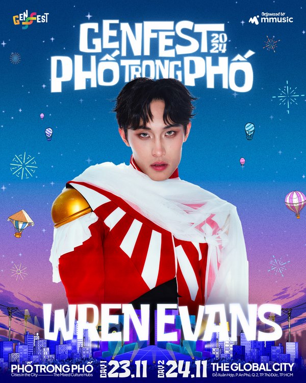 Wren Evans là một trong những gương mặt trẻ nổi bật nhất trong làng nhạc Việt Nam hiện nay. Với phong cách âm nhạc độc đáo anh đã nhanh chóng chiếm trọn cảm tình của khán giả qua các bản hit đình đám như Thích Em Hơi Nhiều, Cơn Đau, và Fever. Tại GENfest 2024, Wren Evans sẽ mang đến một set diễn bùng nổ, đưa khán giả vào một chuyến du hành âm nhạc đầy màu sắc và cảm xúc.