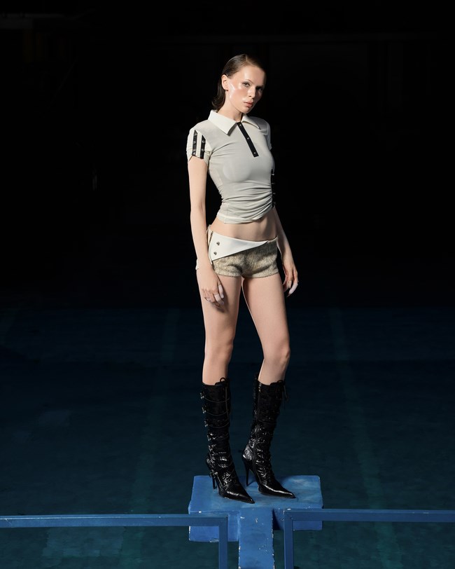 Bộ sưu tập là điểm giao của sự đối lập ấy. Những thiết kế mang dấu ấn của sự khuôn phép trong giới công sở, kết hợp những chi tiết tự do như giấc mơ của người phụ nữ hiện đại. Sơ mi trắng nay được cách điệu để khoe vòng eo, phối cùng short, váy ngắn xếp ly. Những chiếc chân váy trắng được xẻ tà tinh tế, phối voan tôn sự nữ tính, để lộ đường cong nhưng vẫn giữ chất officecore.