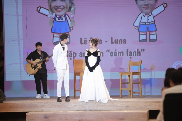 Ngay lúc này, Lê Đức xuất hiện từ phía sau với bộ vest trắng cực điển trai như một bạch mã hoàng tử khiến khách mời không ngừng phấn khích, hú hét tên Lê Đức để cổ vũ tinh thần cho anh chàng. Mặt đối mặt với người thương, Lê Đức thổ lộ: “Hôm nay, anh muốn đứng trước mặt em để tỏ tình em một lần nữa. Chắc điều này anh cũng đã nói với em rồi, đó là: Anh rất thích Luna, anh rất thích em”. Câu nói của anh chàng khiến khán giả bất ngờ khi nhận ra đây không phải là lần đầu tiên anh tỏ tình với Luna.