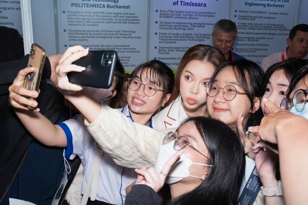 Sự xuất hiện của Lý Nhã Kỳ khiến các bạn trẻ đến tìm hiểu về chiến lược học bổng, cơ hội trúng tuyển vào các trường đại học danh giá và các trường đại học phù hợp tại sự kiện này vô cùng thích thú. Nhiều sinh viên học sinh vây quanh “Kiều nữ và đại gia” xin chụp ảnh và xin chữ ký, xin vía thành đạt của Lý Nhã Kỳ.